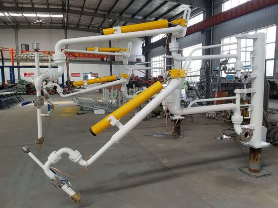 鶴管的安裝方法:發(fā)油臺(tái)與鶴管連接處配有相應(yīng)的標(biāo)準(zhǔn)法蘭,并保證基礎(chǔ)法蘭牢固可靠,法蘭盤距地面高度為2.1~2.2米,鶴管倒裝時(shí)法蘭盤距地面高度為2.7~2.8米。安裝過程中,每個(gè)法蘭面必須輕清潔干凈,有密封槽的必須用黃油將O形圈裝好后再連接在每個(gè)銷軸轉(zhuǎn)動(dòng)部分及彈簧平衡器安裝使用前必須涂潤(rùn)滑機(jī)油。<了解詳情>
